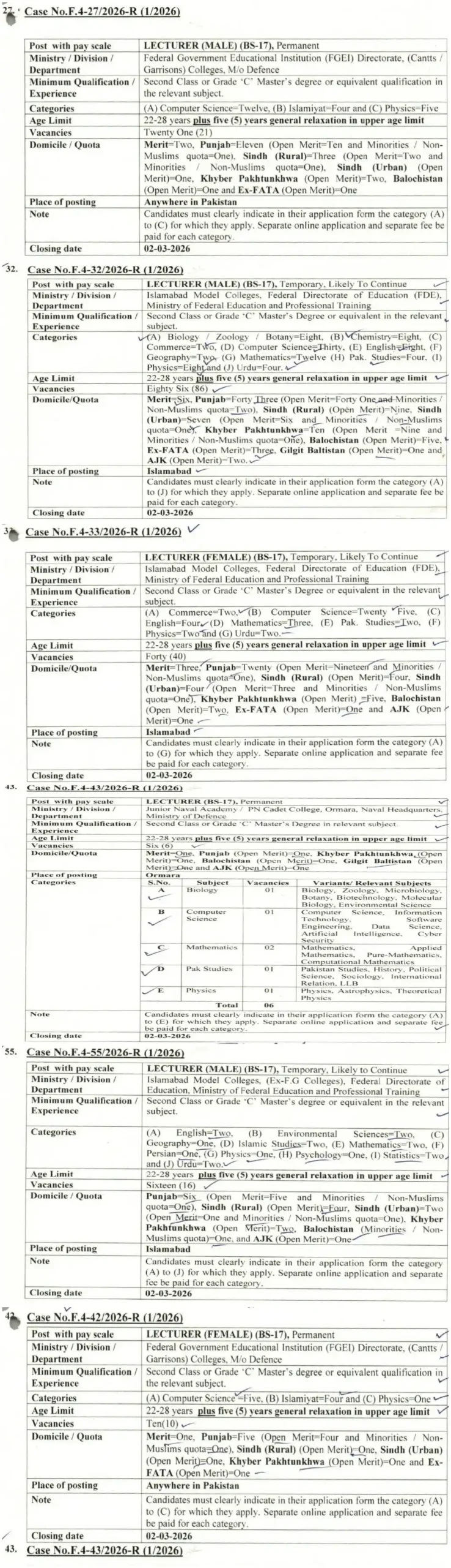 FPSC Lecturer (BPS-17) Jobs 2026 Last Date