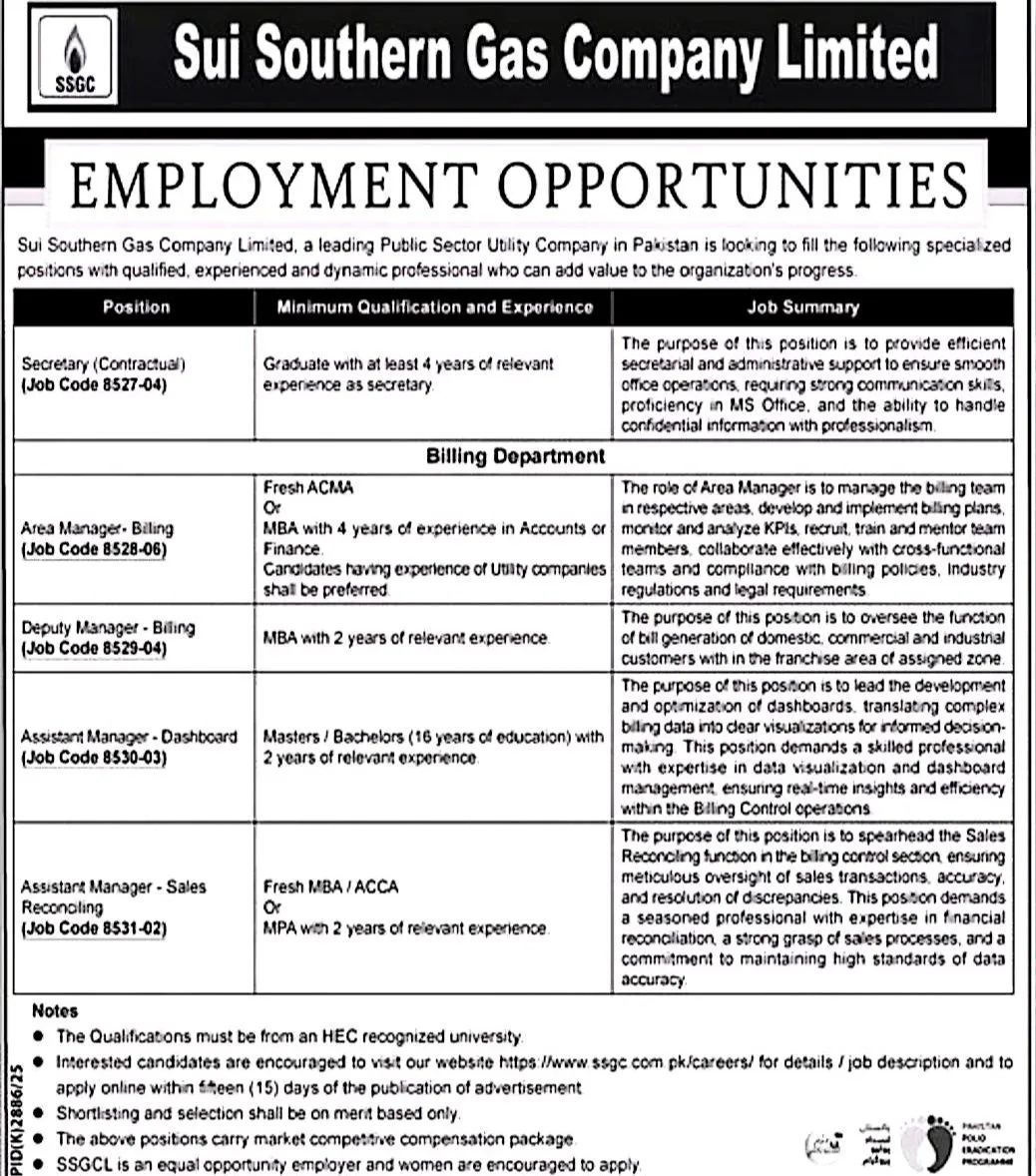 Sui Southern Gas Company Limited Jobs 2026 – Latest Employment Opportunities at SSGC